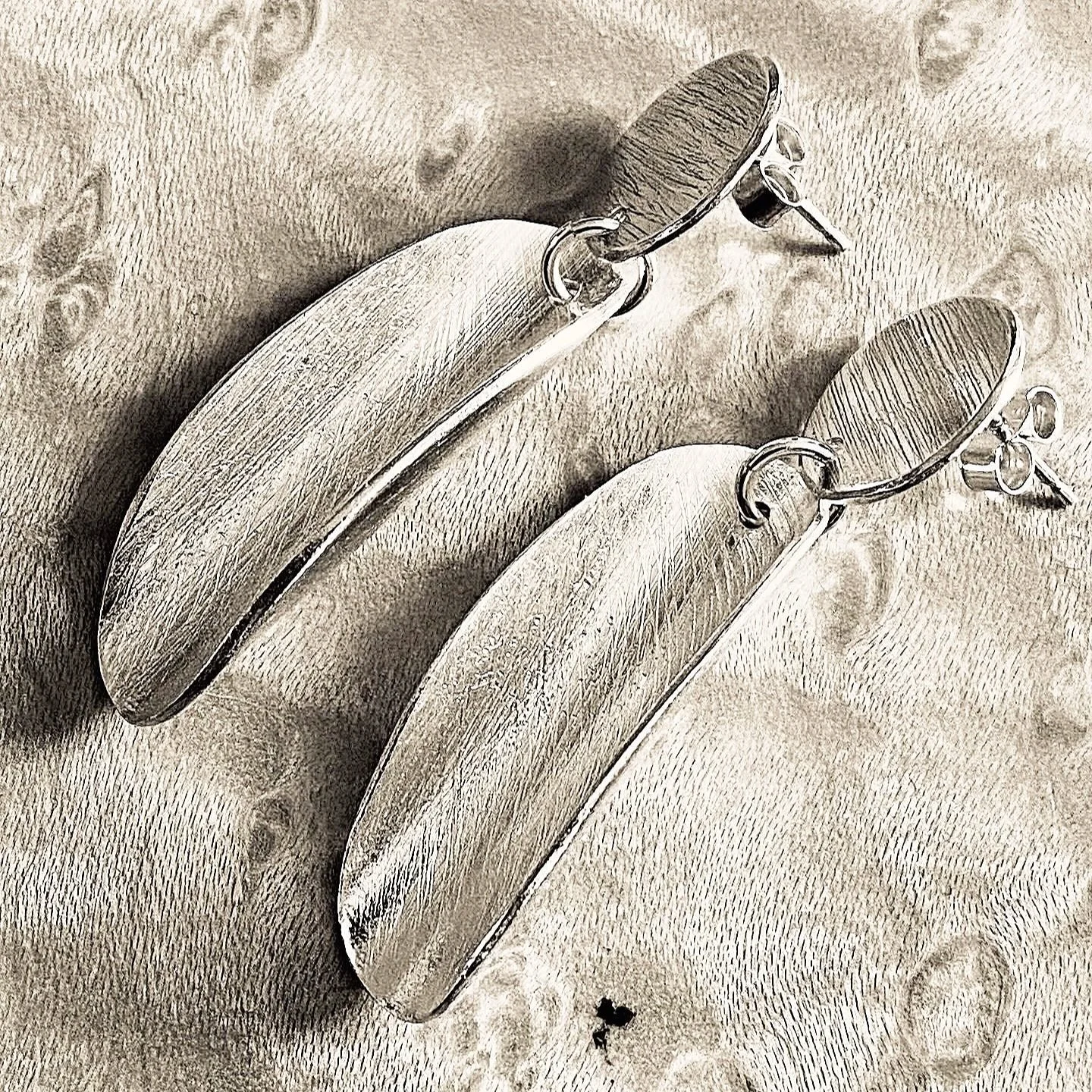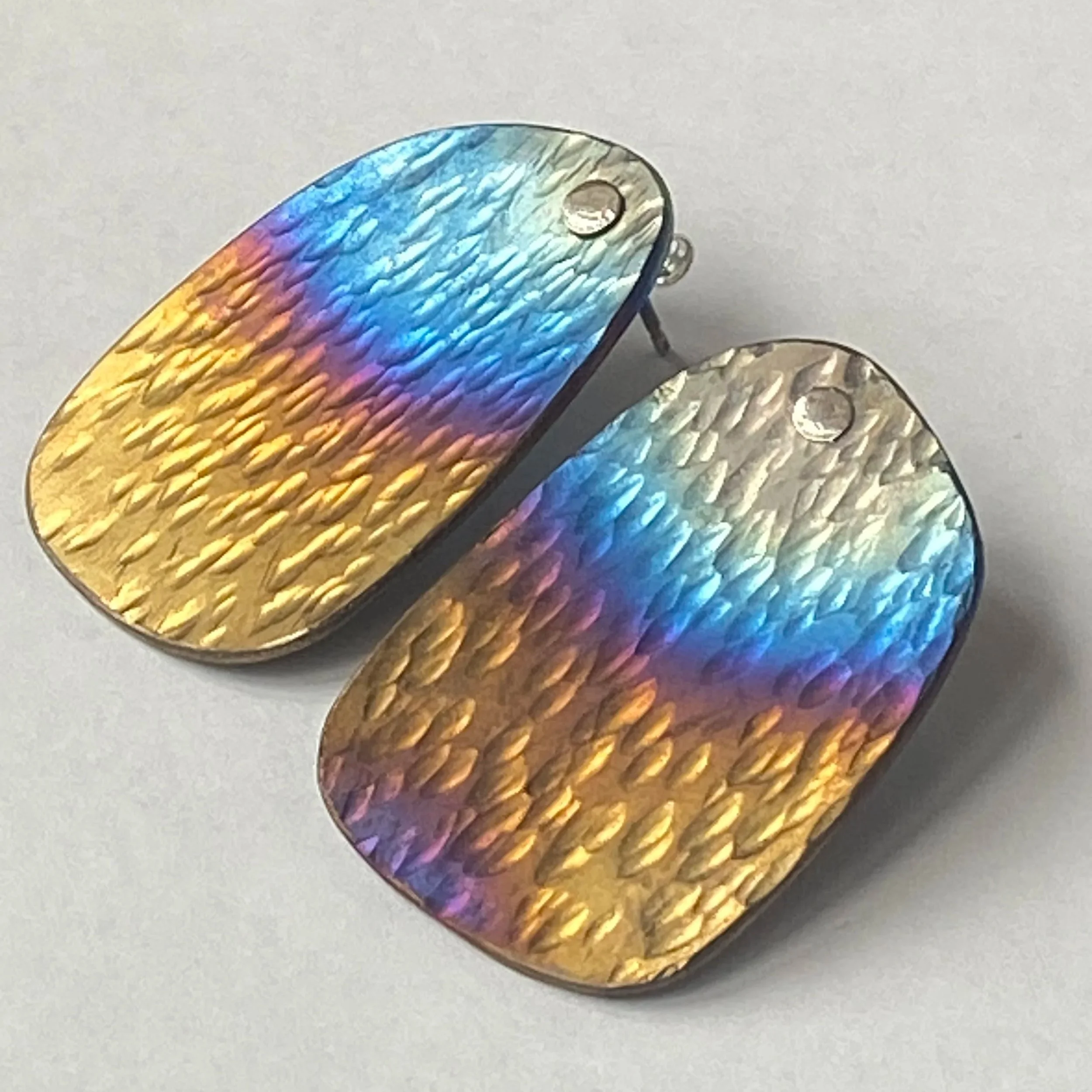 Handmade, textured statement earrings for pierced ears in silver, gold and titanium.