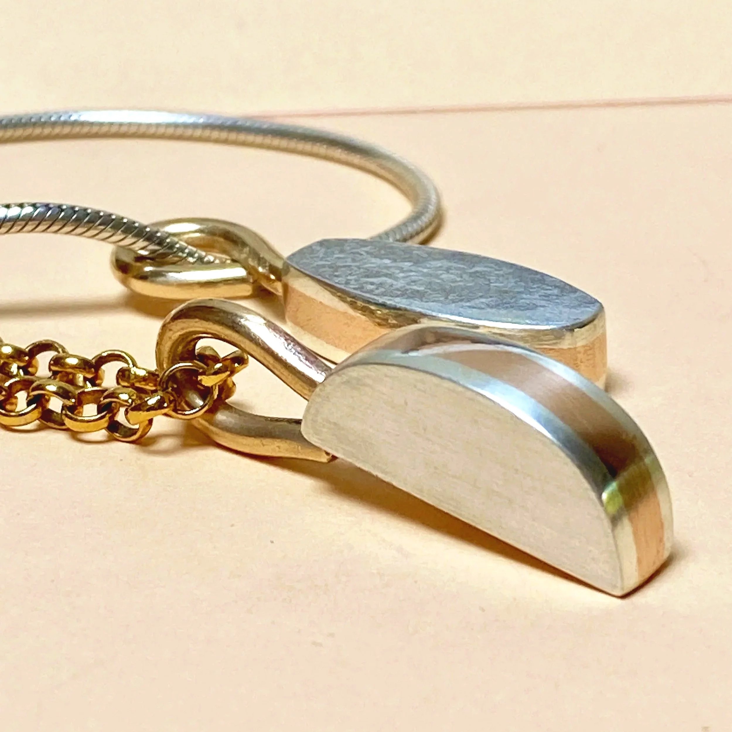 Handmade pendants in solid silver and other metals - gold, bronze and gold-filled brass.